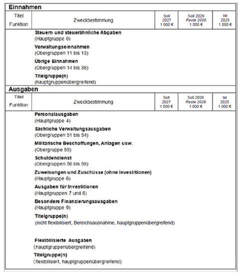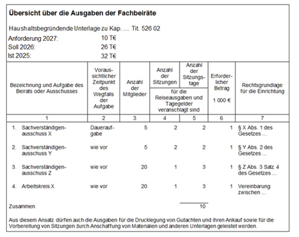 - Ausgaben der Bereichsausnahme für den „Schutz der informationstechnischen Systeme des Bundes“Die Ausgaben dieser Bereichsausnahme sind in einer nicht-flexibilisierten Titelgruppe mit der Zweckbestimmung „Ausgaben für den Schutz der informationstechnischen Systeme des Bundes“ zu veranschlagen. Bei der Titelgruppe ist ein Haushaltsvermerk mit folgendem Inhalt auszubringen:„Aus den Titeln dieser Titelgruppe dürfen nur Ausgaben geleistet werden, die dem Schutz der informationstechnischen Systeme im Sinne des Artikel 115 Absatz 2 Satz 4 des Grundgesetzes dienen.“Zu den in der Titelgruppe zu veranschlagenden Ausgaben gehören auch die entsprechenden Personalausgaben (siehe auch Nummern 4.8 und 9).Siehe dazu auch Beispiel 4.