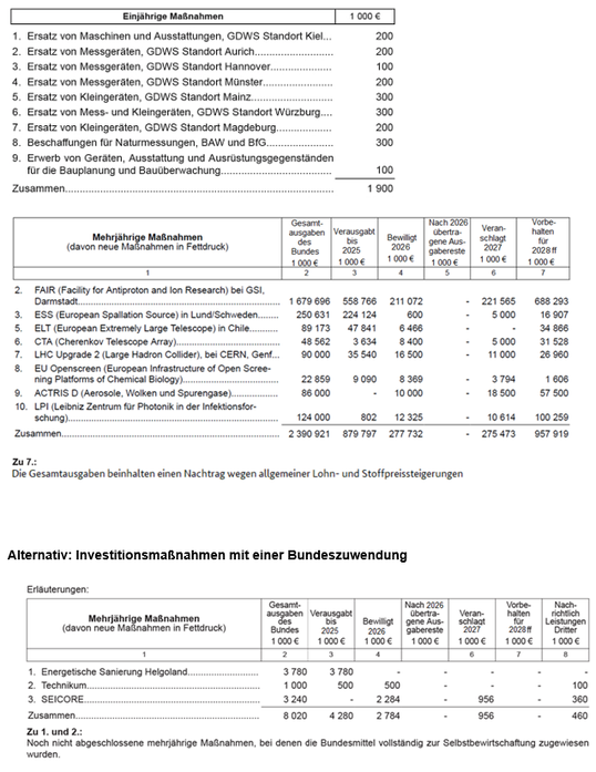 > 1.000 T€ bei Beschaffungen und Entwicklungsvorhaben; > 6.000 T€ bei Baumaßnahmen*) | > 1.000 T€ bei Beschaffungen und Entwicklungsvorhaben; > 6.000 T€ bei Baumaßnahmen*) | 11.2 | |