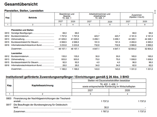 9.8.1 | Gliederung des Personalhaushalts | ||