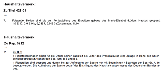 9.8.5 | Haushaltsvermerke im Personalhaushalt | ||