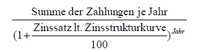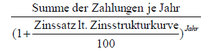 zu Beginn eines Jahres zu Beginn eines Vierteljahres Mitte jedes Vierteljahres Ende jedes Vierteljahres Beginn jeden Monats Ende jeden Monats | 1 +i 1 + 5/8i 1 + 1/2i 1 + 3/8i 1 + 13/24i 1 + 11/24i | 1,06 1,0375 1,03 1,0225 1,0325 1,0275 |